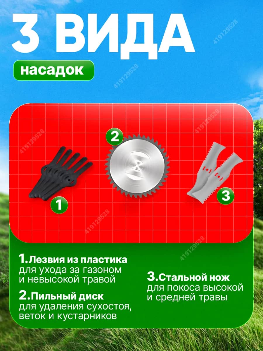 Устали от слабого триммера, который не справляется с жесткими сорняками? Наш переносной бесщеточный триммер для травы 3 в 1 с регулируемой высотой - решение вашей проблемы. В комплекте идет циркулярное лезвие, которое быстро и легко срезает траву, самые жесткие сорняки и даже ветки.